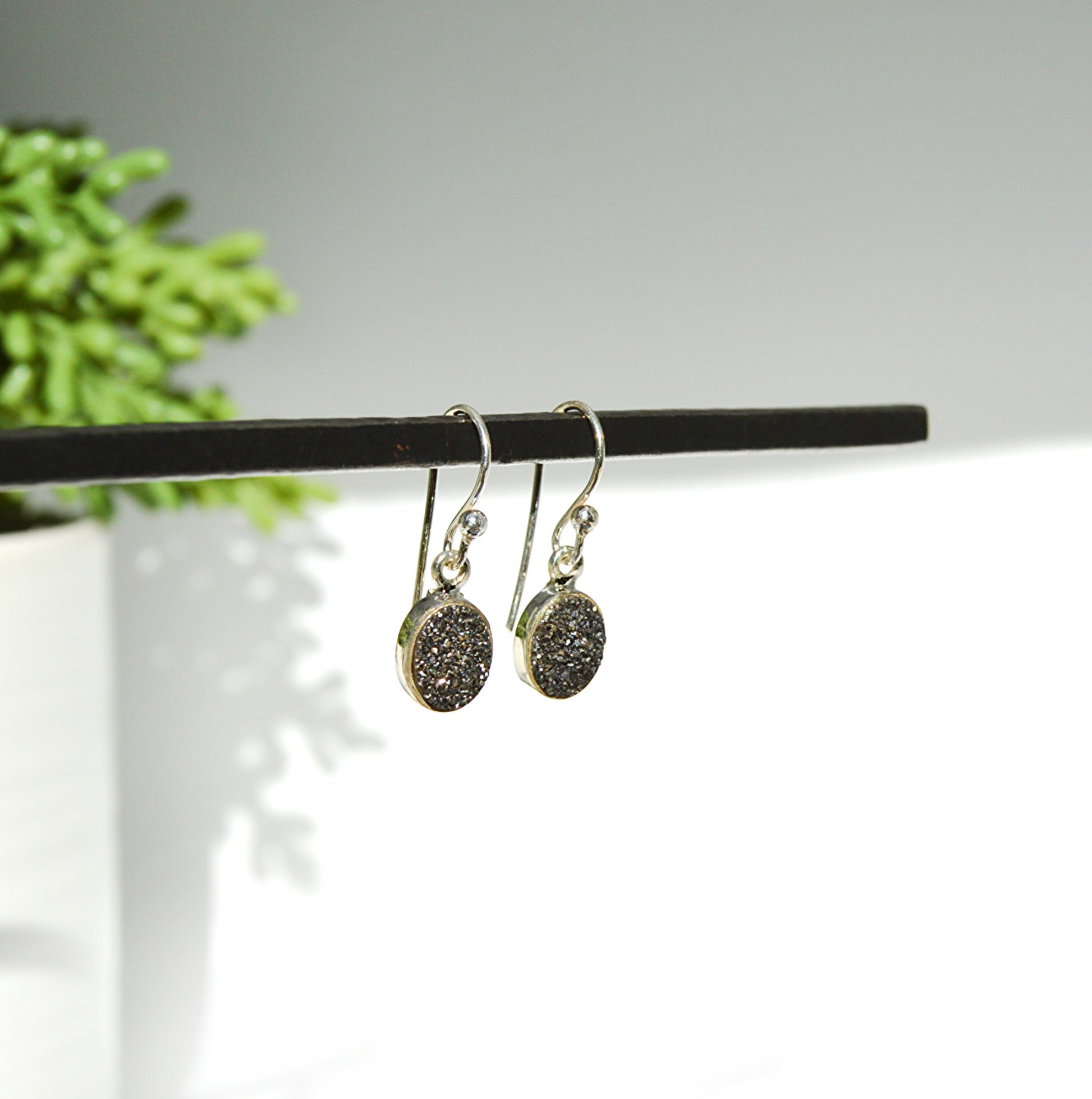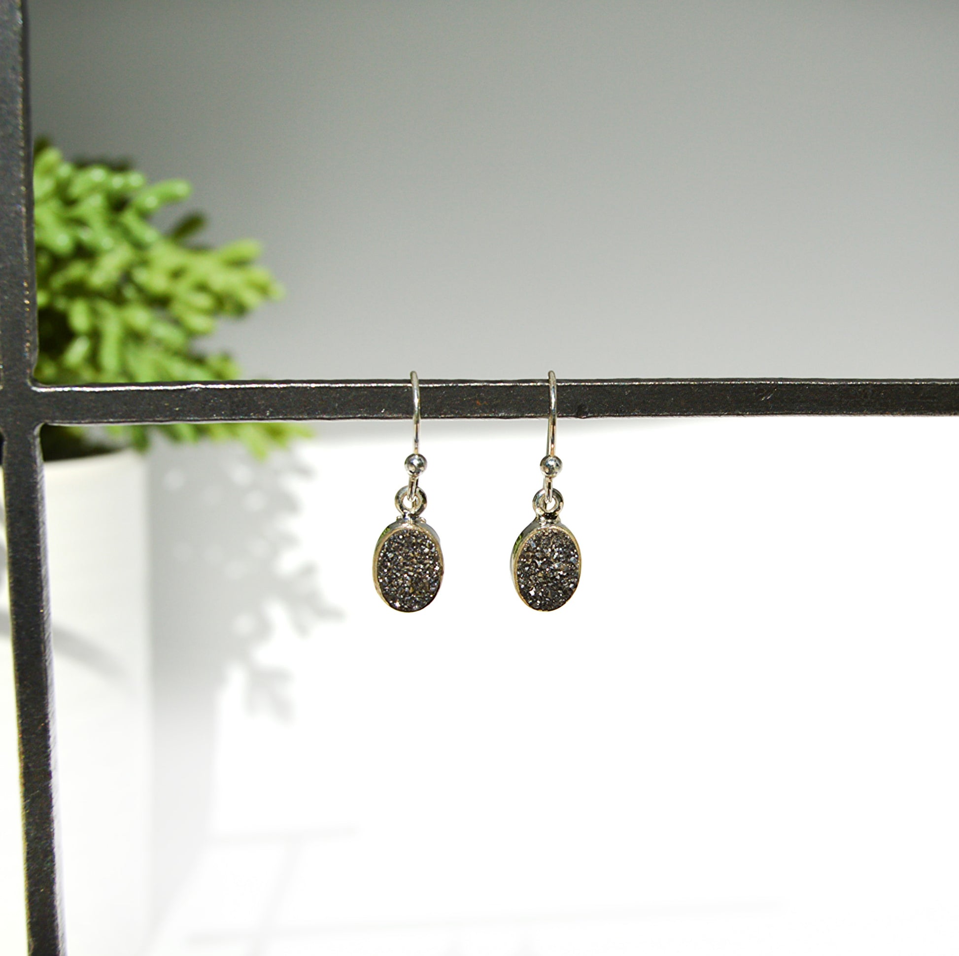 Embrace your inner sparkle with these black druzy dangle earrings. Crafted with druzy stones and sterling silver, they're designed to help you shine with confidence. A beautiful reminder that you deserve to feel amazing every day.