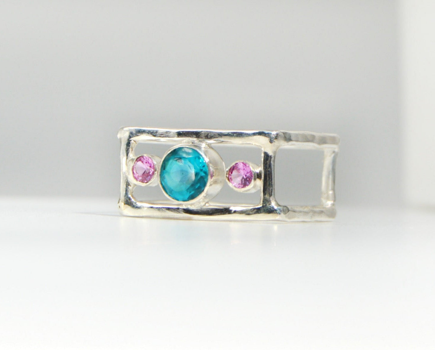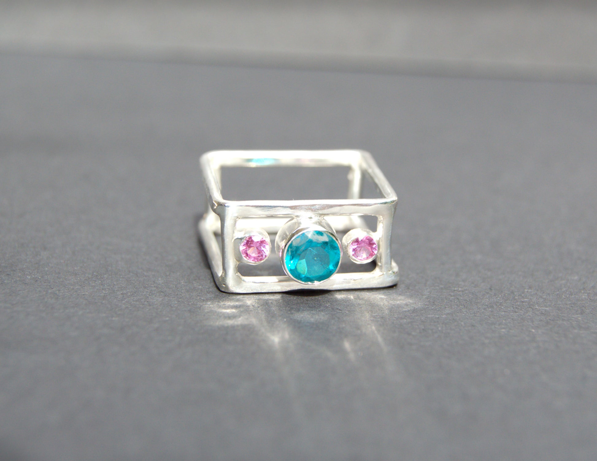Paraiba and Pink Tourmaline Square Ring Size 8