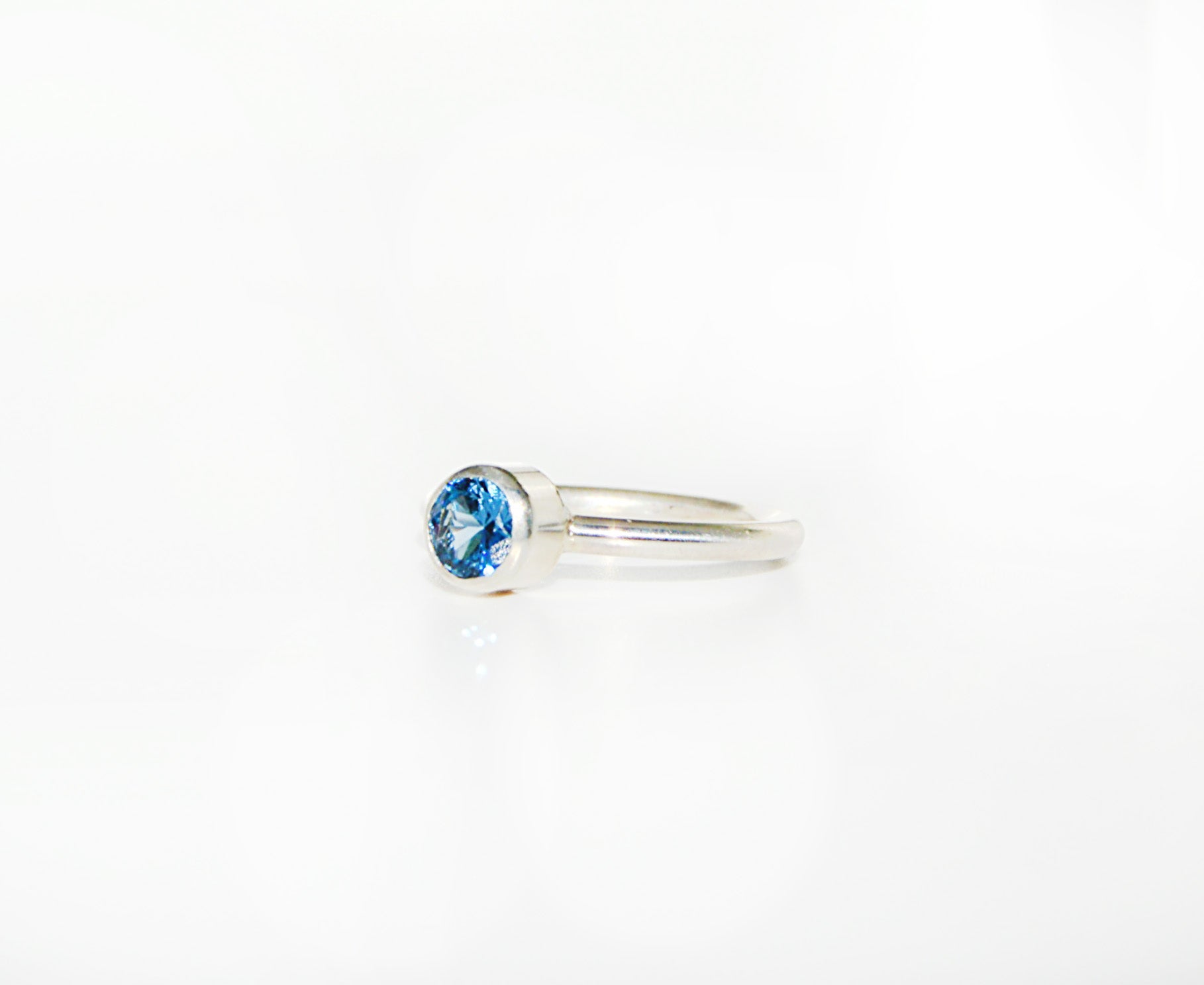 This sterling silver Blue Zircon Tube Set Ring features a sleek, stackable design that effortlessly combines elegance with versatility. The tube setting highlights the captivating blue of the zircon, making it a refined choice for layering or wearing alone. Perfect for adding a subtle yet sophisticated touch to any ensemble.
