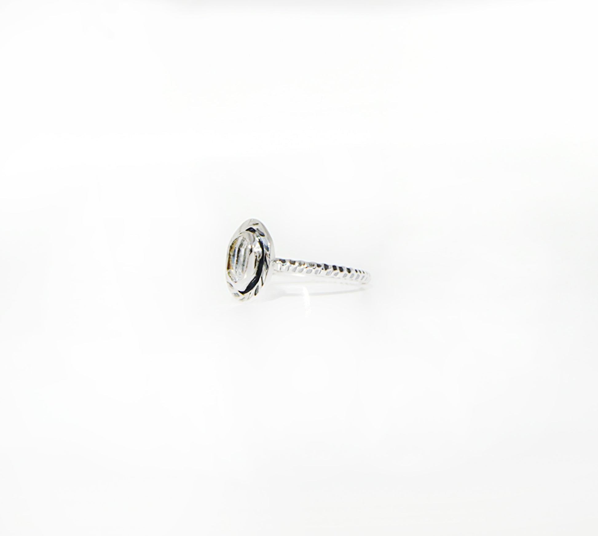 Embrace refined elegance with this Herkimer Diamond Ring, showcasing nature's most luminous gemstones set in polished sterling silver. The architectural backplate design accentuates the stone's exceptional brilliance and clarity, creating a timeless piece for those who appreciate authentic beauty. Sophisticated simplicity at its finest.