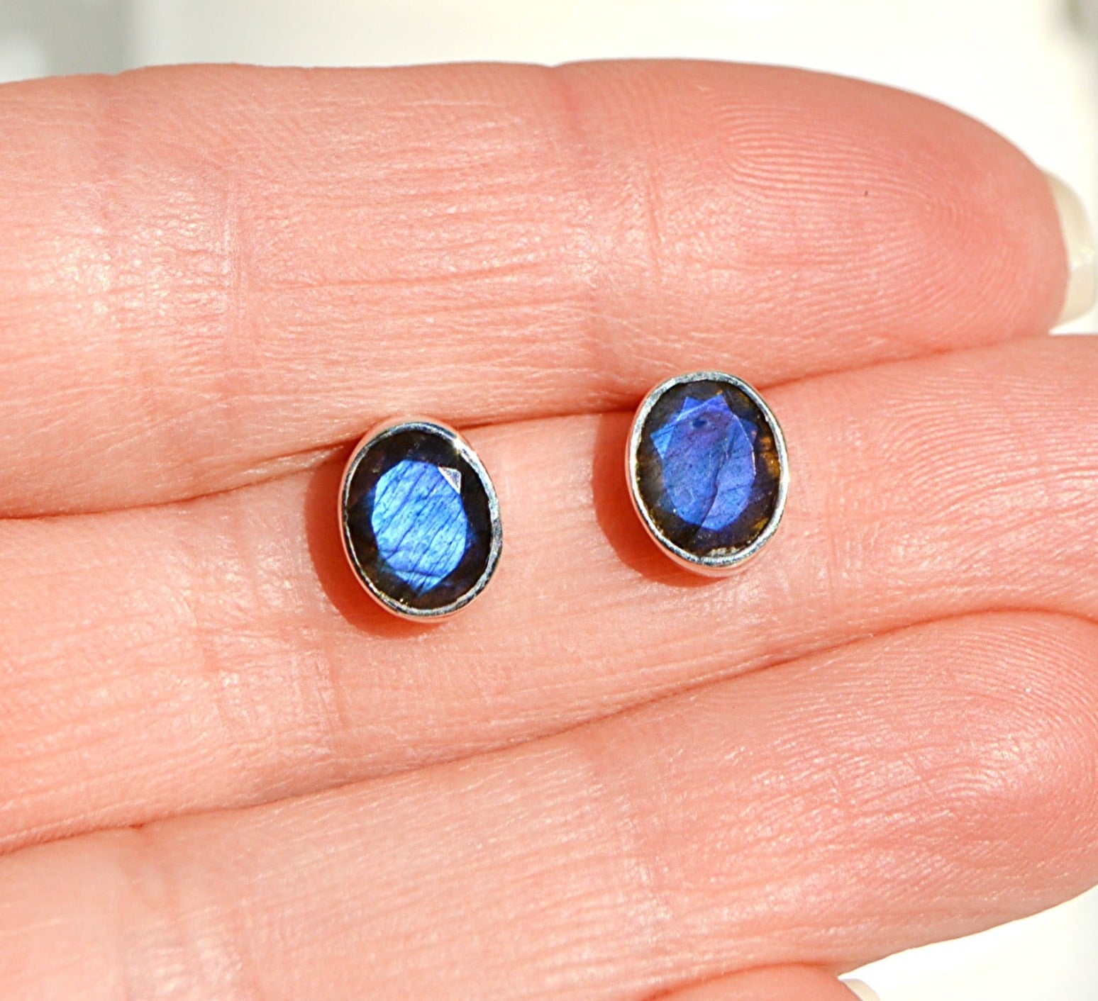 These charming labradorite studs bring a flash of magic to your everyday look. Each oval stone showcases the gemstone's signature shimmer and play of color, set in polished sterling silver for a timeless touch. Perfect for adding a hint of sparkle without the fuss—just pop them in and go. A playful way to keep a little wonder close.