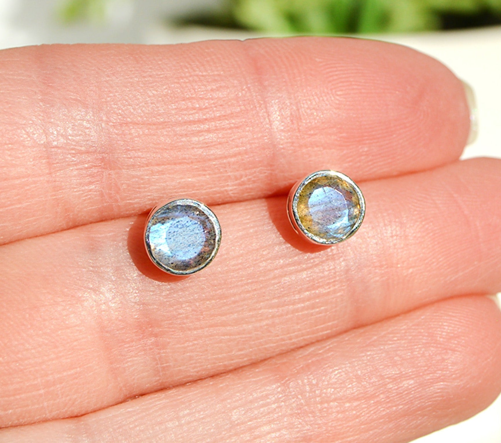 Catch the light and turn heads with these shimmering labradorite studs. Flashing with mesmerizing blue and green hues, these sterling silver earrings bring a touch of magic to any look. Perfect for everyday wear or when you need a little extra sparkle to brighten your day.