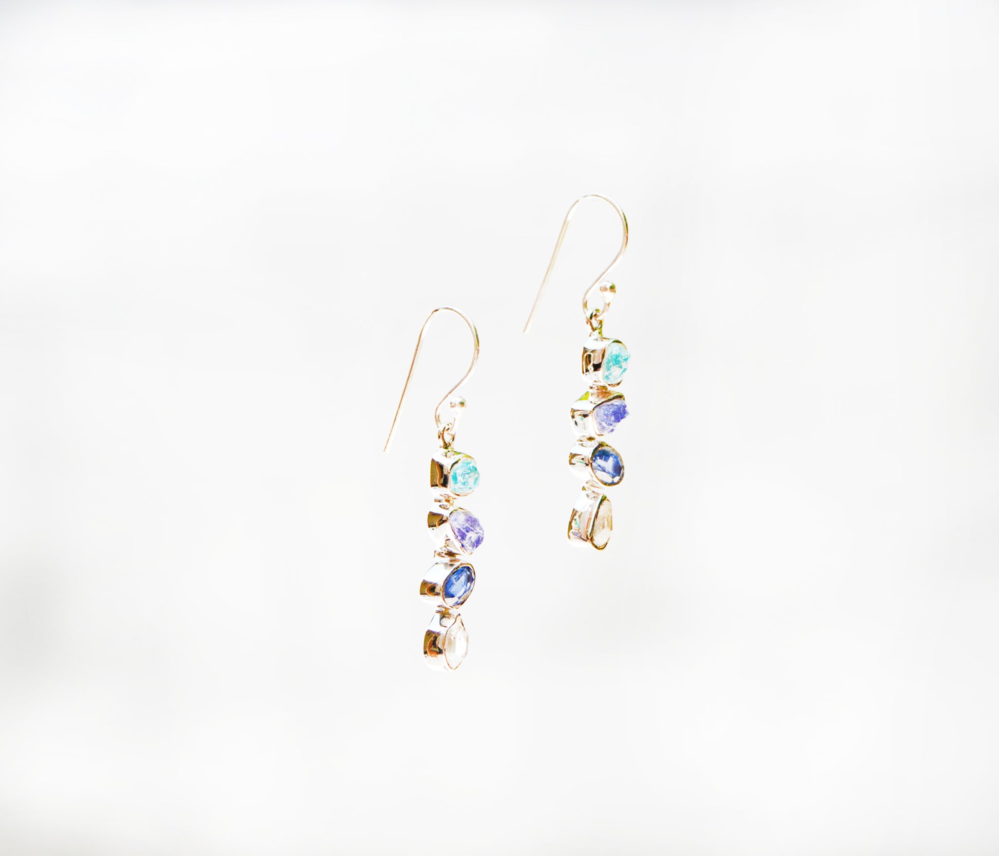 Elevate your elegance with these Tanzanite Drop Earrings, featuring a graceful arrangement of multi-colored stones set in sterling silver. Their refined design subtly captures light, adding a sophisticated sparkle that complements any ensemble, from day to evening. Perfect for those who appreciate timeless beauty with a modern touch.