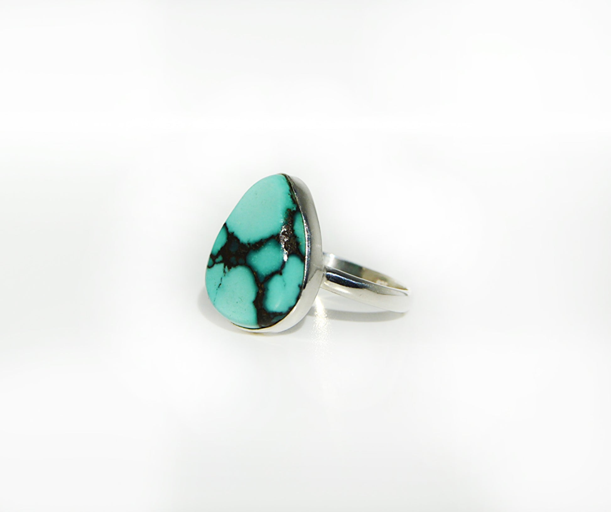 Stunning turquoise stone set in gleaming sterling silver, this handmade ring brings natural beauty to your everyday style. Each piece is crafted with care, showcasing the unique character of genuine turquoise. The cool blue-green hues pair perfectly with the lustrous sterling silver setting, creating an elegant accessory that works for any occasion.